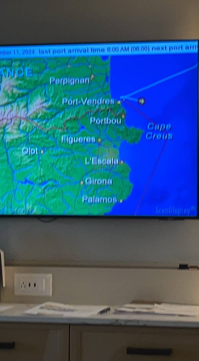 Just gone 8am and el Capitano has just confirmed what us regular cruisers already knew - too rough a sea and too windy to tender ashore at Port Vendres so we have a day at sea instead.